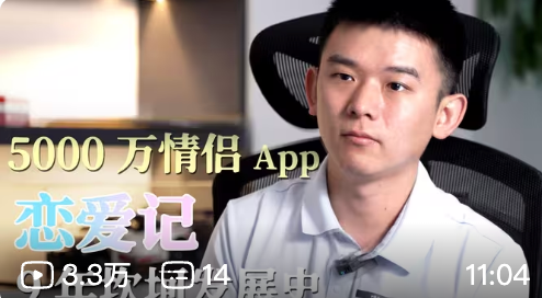 近期,我在多个平台关注做社交项目的博主时,恰巧在B站刷到个采访视频——《5000万用户APP的9年坎坷发展史》,采访对象正是“恋爱记”创始人付小龙。